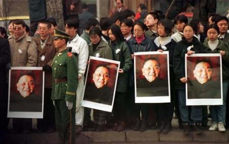 1997年2月24日,北京长安街,群众自发悼念邓小平。改革开放总设计师邓小平于2月19日在北京逝世,享年92岁。