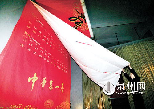晋江市罗山镇一企业制作的巨型2009年挂历,近日被收入“时间收藏馆”向外展示。这本挂历高8.8米,宽3.8米,画面以中国传统乐器与东方武术为内容。该挂历已被上海大世界基尼斯之最总部评为“世界上最大的挂历”。