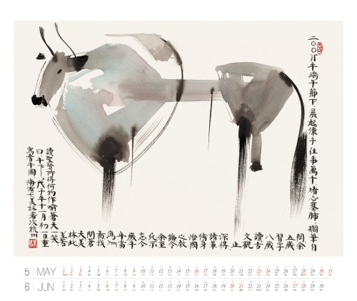 题跋:二零零八年端午节下,晨起练手,往事万千,堵心塞肺,搁笔自问:余五岁习字,八岁读《古文观止》,深得诸辈修身治国之教诲,令余至死不忘今岁牛年,当写牛图。我问苍天:美林此生苦读圣贤,所得何物?作喻苍天一笑。曰:牛也。戊子年十一月初一日,重写老牛图。海右人美林客次杭州。