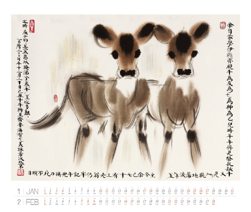 题跋:余自蒙学伊始,亦视牛为友为人为神为己。儿时年年得见祭孔杀牛,又见牛跪地落泪求生。至今,余已七十有三,老翁仍牢记牛儿挨刀死不瞑目之时。屈子曰:长太息以掩涕兮,哀“牛”生之多艰。公历二零零八年十二月二十日,己丑牛年将至,齐鲁海右人美林客次北京。