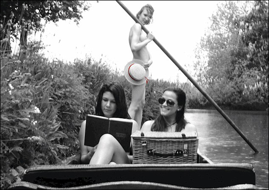近日,为了给世界上挨饿受苦的穷人筹集善款,60多名牛津学子褪去衣衫,拍摄了一组裸体挂历。挂历拍摄场景均在牛津大学校内完成。7月的画面是三位女生在谢尔河上撑船前行的场景;8月的画面中可以看到一些学生在大学校园里活动的场景。这些学生看似不经意地用木板或者乐器遮住自己的隐私部位。11月的是一群橄榄球队员正在进行紧张而激烈的比赛……其中一幅照片是三个女生在图书馆里阅读名著的情景。有反对人士称,三个女生用名著掩盖各自隐私部位的举动,是对名著本身的亵渎。