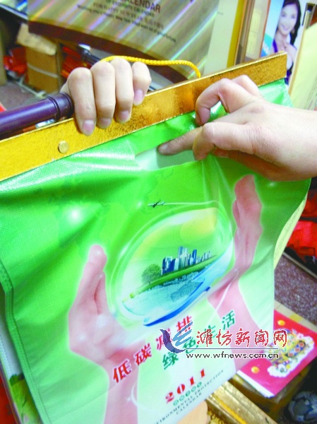 记者看到,这种无纺布挂历颜色多种多样,在传统挂历的功能上,添加了流行的环保元素,用无纺布购物袋代替了原有的纸张,在无纺布袋上印制精美图案及月历。据店方介绍,挂历用完后,将后面的螺丝拆下,页面可以分别卸下,当购物袋使用,每个购物袋装5公斤大米没有问题,实用、美观,又很有个性。